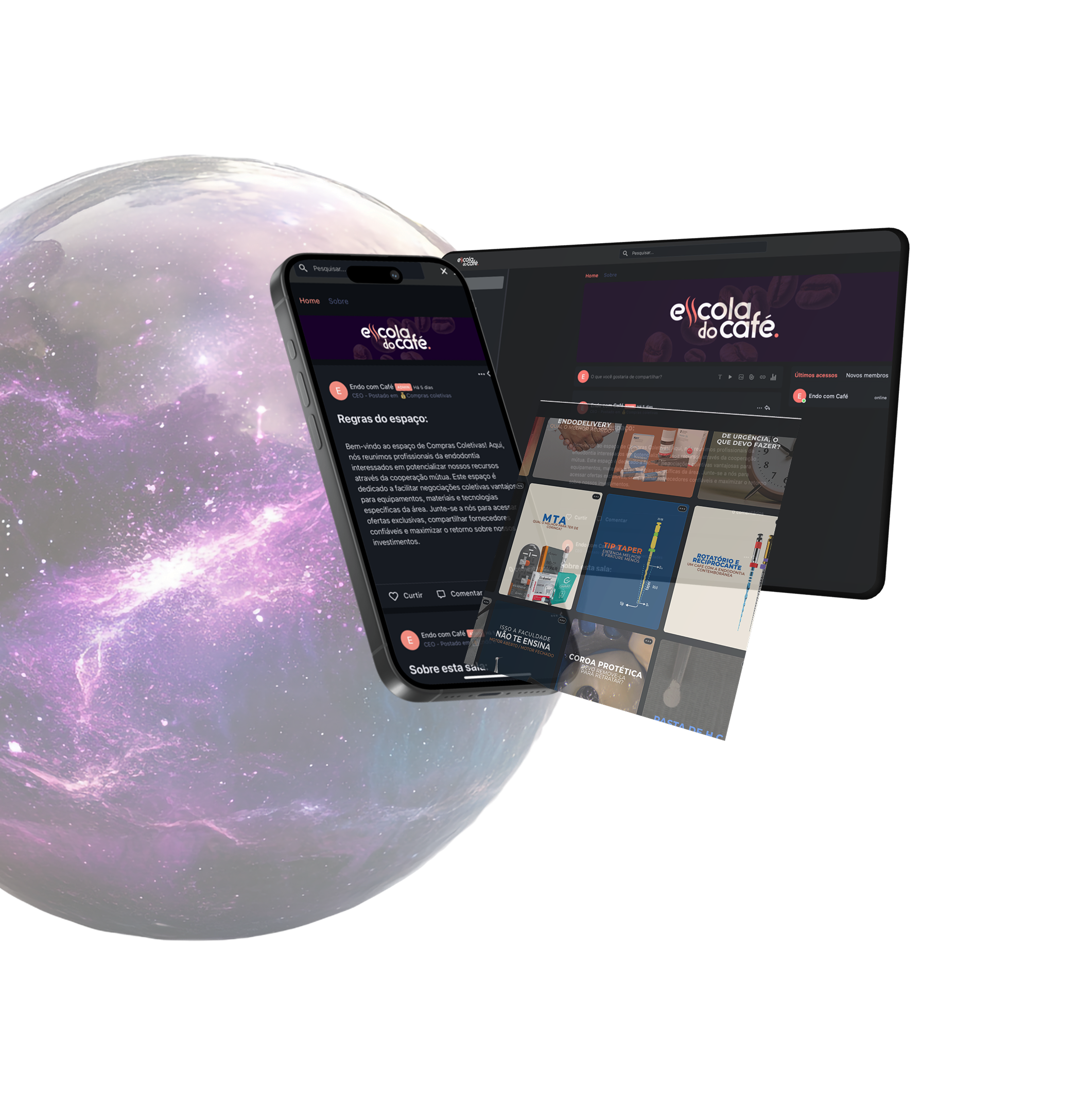 Juntos, criamos um universo endodôntico o Endo com Café, um projeto que já impactou mais de 20 mil alunos pelo digital. E hoje, também somos responsáveis pela Escola do Café — uma comunidade de ensino em Endodontia feita pra quem quer aprender de verdade, com conteúdo prático, direto ao ponto e sem complicação. Se a faculdade não te preparou, a gente prepara.