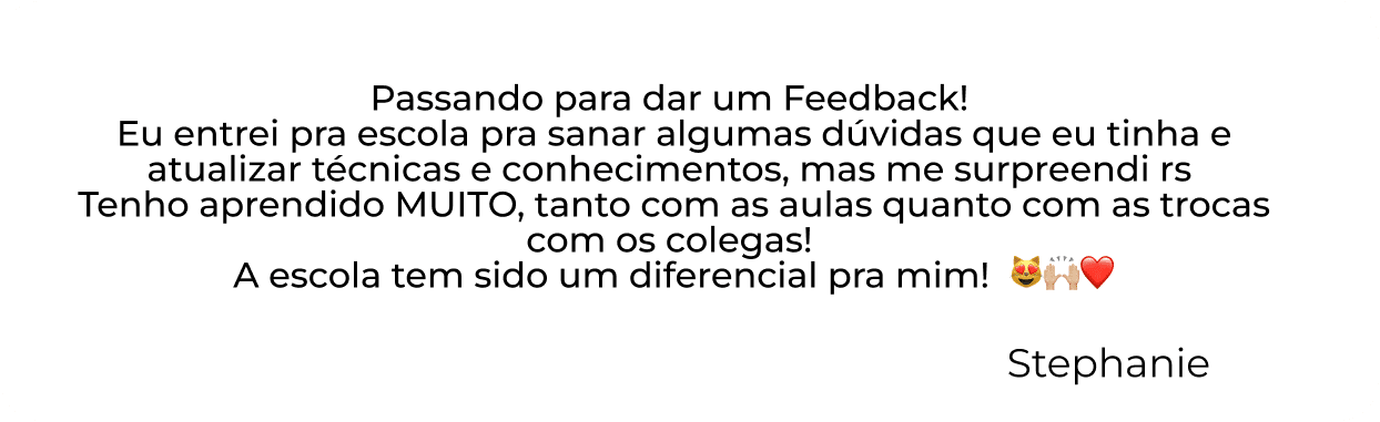 Eu entrei pra escola pra sanar algumas dúvidas que eu tinha e atualizar técnicas e conhecimentos, mas me surpreendi rs